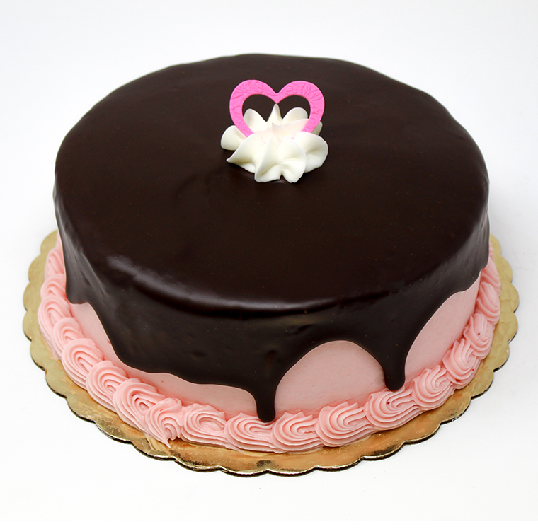 This dessert cake features a layer of chocolate cake, a layer of vanilla cake, and a layer of strawberry cake separated by layers of strawberry filling, then iced in strawberry buttercream and dripping with chocolate ganache!